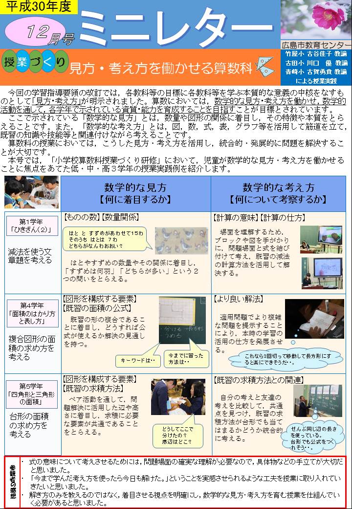 学ぶ意欲が高まる授業を目指して(小学校算数科編)