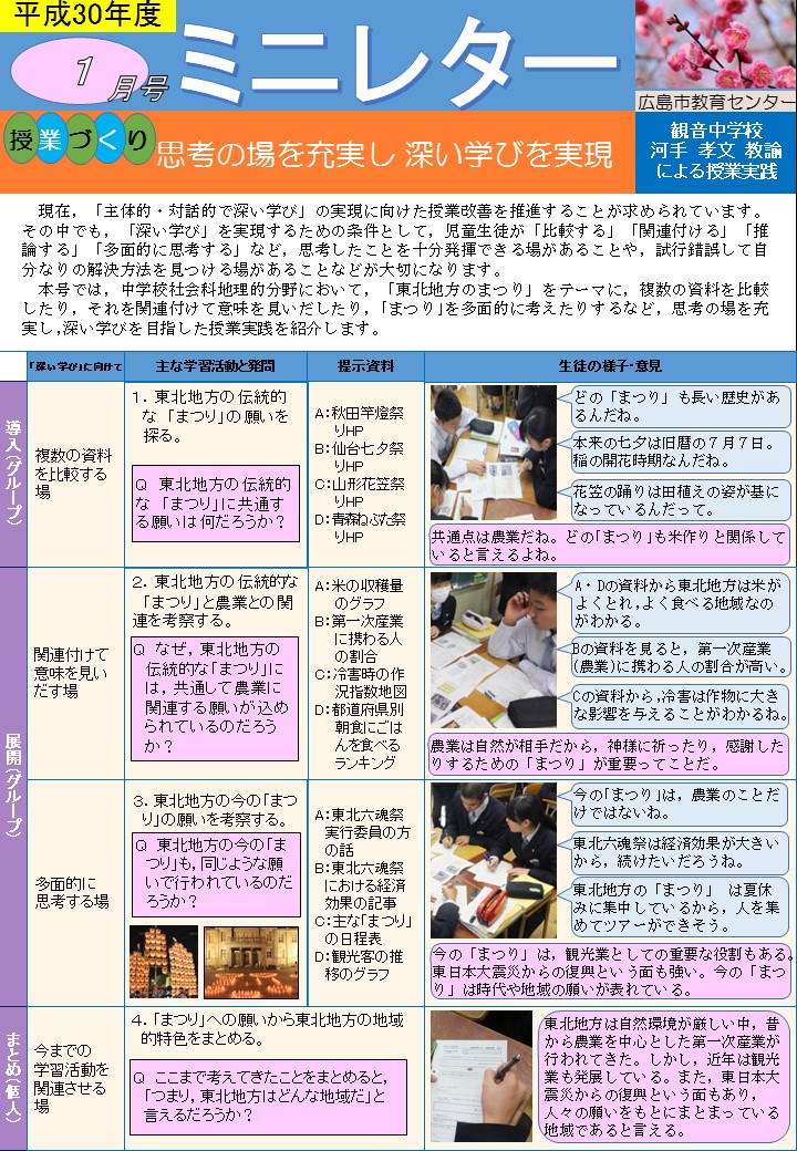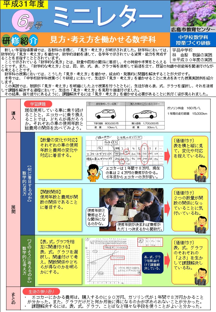 学ぶ意欲が高まる授業を目指して(中学校数学科編)