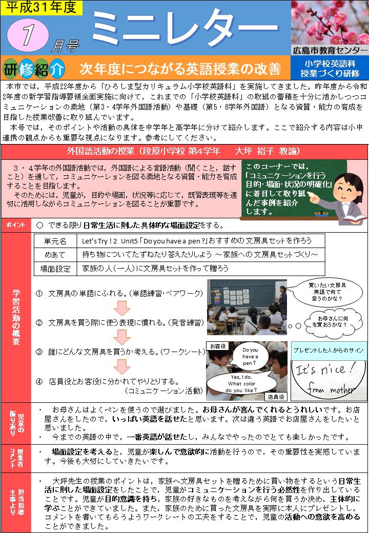学ぶ意欲が高まる授業を目指して(中学校外国語科編)