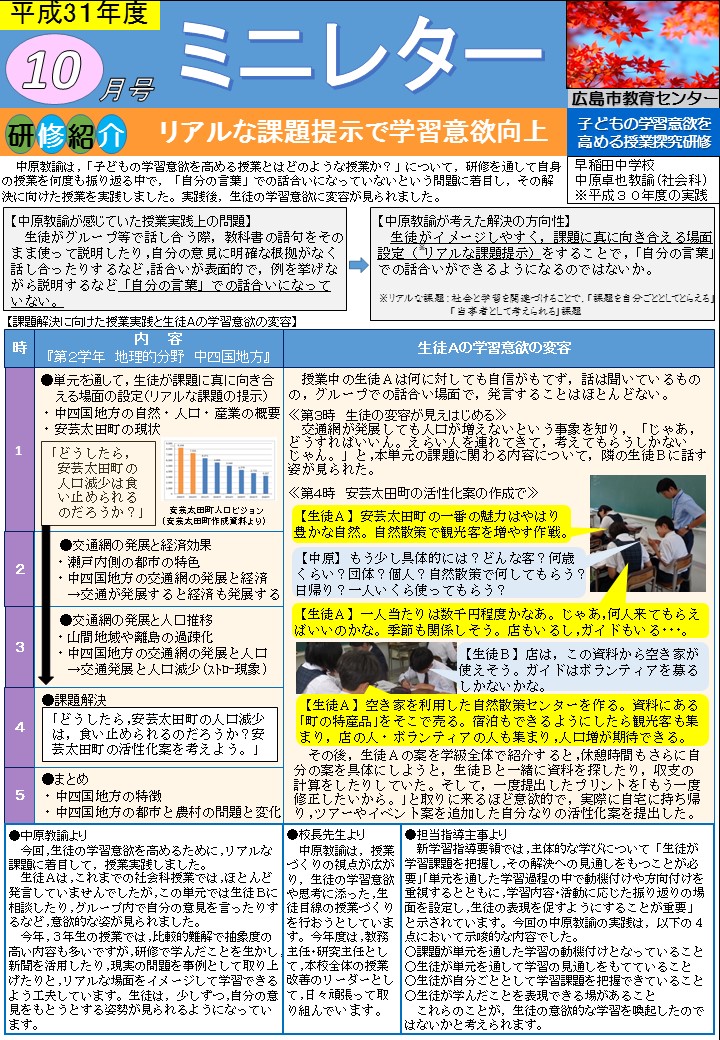 ○研修紹介(子どもの学習意欲を高める授業探究研修)
